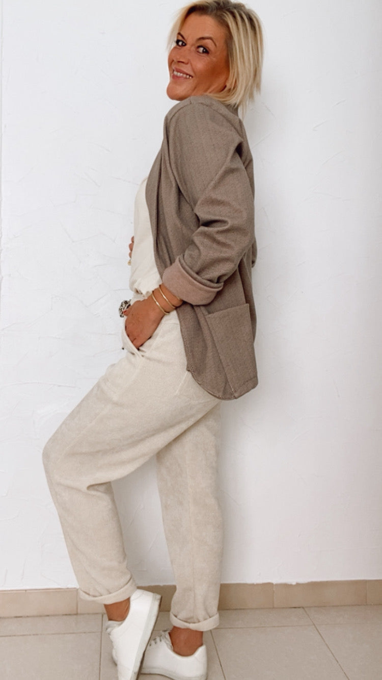 - Pantalon en nid d’abeille écru fabriqué en Italie