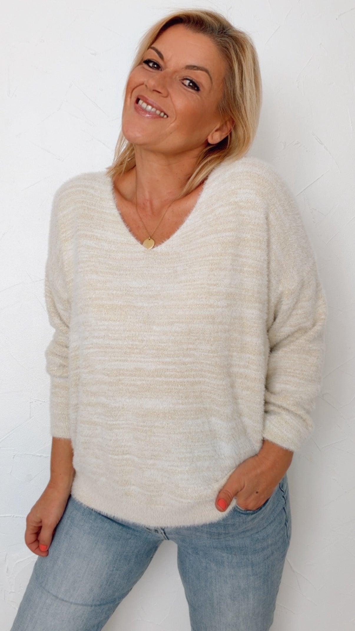 - Pull écru & goldy extrêmement doux fabriqué en Italie